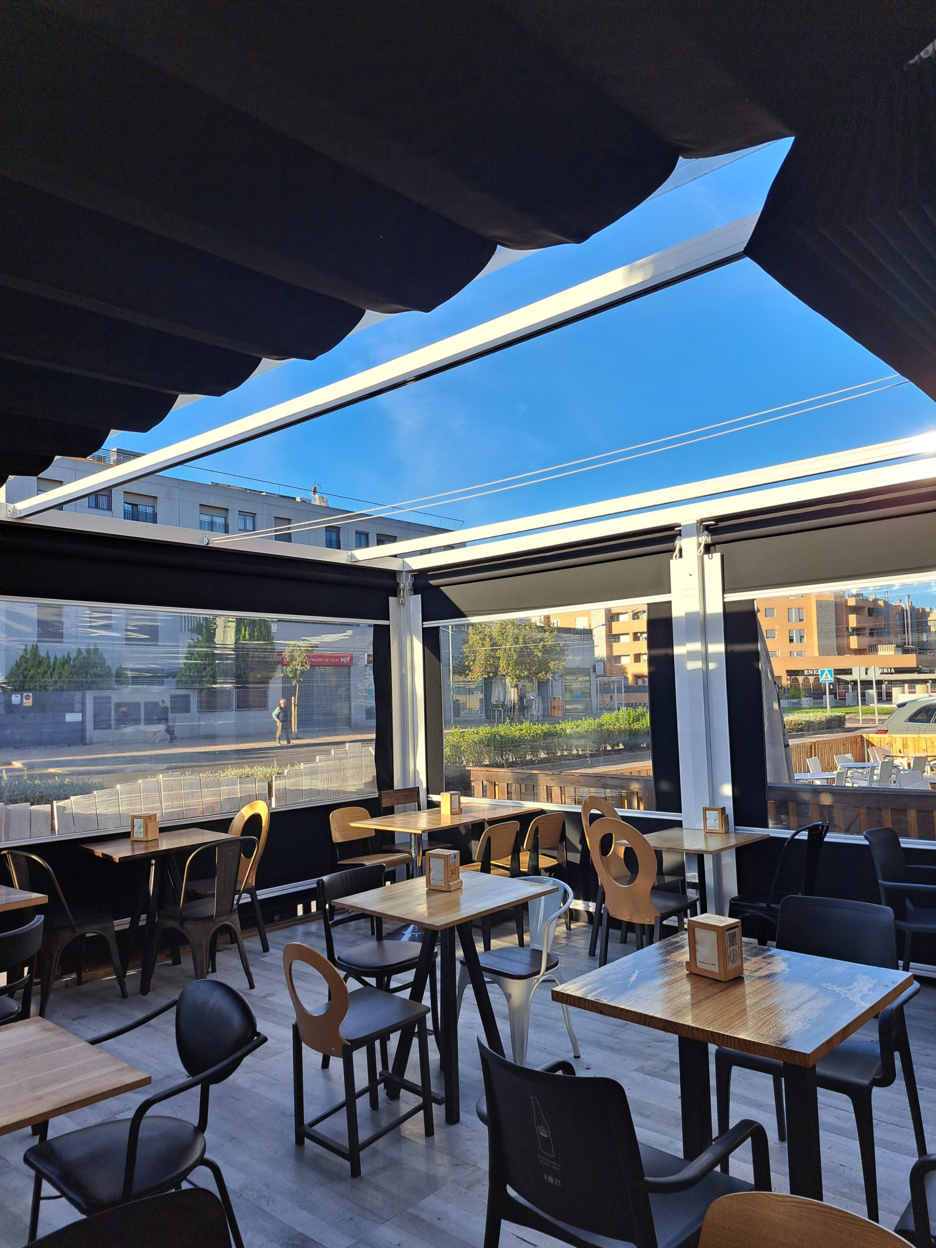 Venta de toldos para terrazas, para balcones o patios, para ventanas, con o sin motor, toldos con cofre, pérgolas con lona, toldos personalizados y cerramientos de terrazas para particulares, bares, restaurantes.