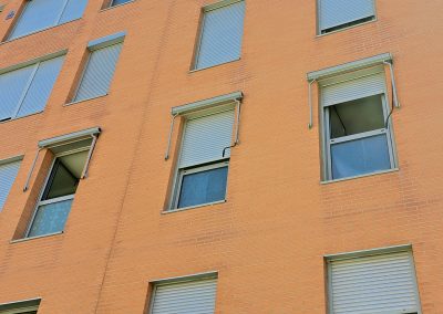 El sistema de Toldo punto recto o portada recto se encuadra en los protectores solares con sistema enrollable. Con sujeción a techo y entre paredes, la recogida y extensión se realiza por medio de un eje de acero, manual mediante manivela o motorizado. Una sola estructura puede medir hasta 4,5m. Se pueden motorizar. Con posibilidad de lacar en cualquier color Ral.